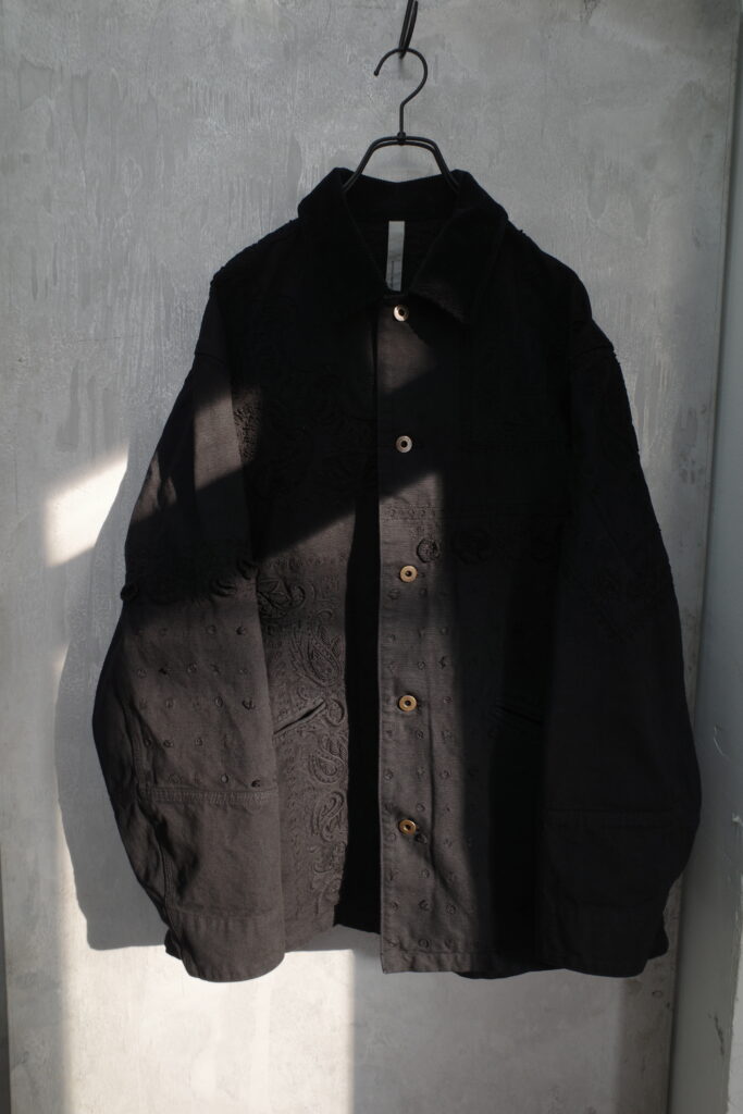 こちらももちろん2次加工としてガーメントダイ。トラウザー同様に最初から着古したような着用感と同色刺繍の静かな強さが混じった他にはないプロダクトへ。もうね、” KIMINORI MORISHITA “ しか勝たん。買ったその日から寄り添ってくれながら、独特のブルーブラックの色味は経年美化も楽しめる。